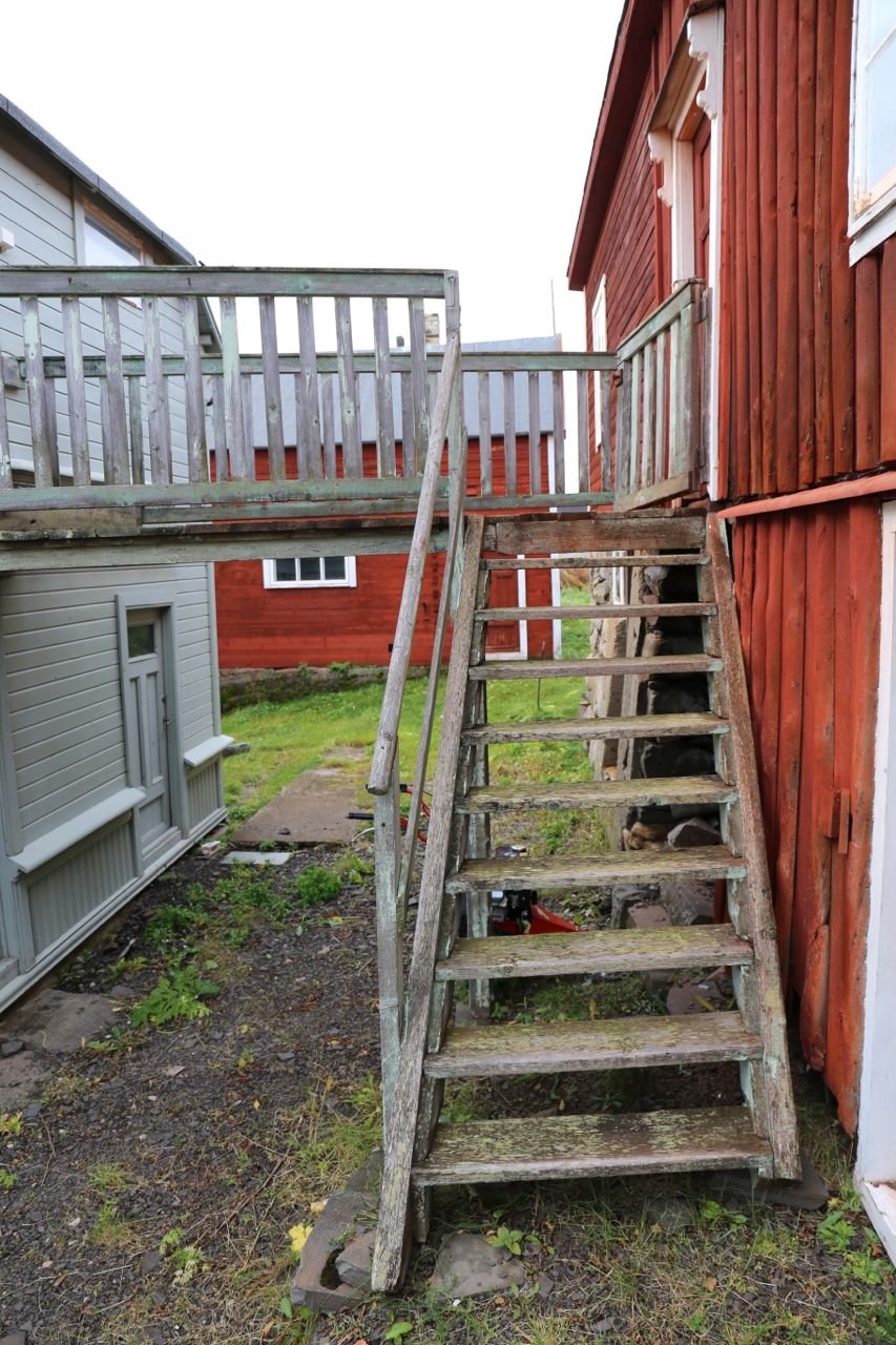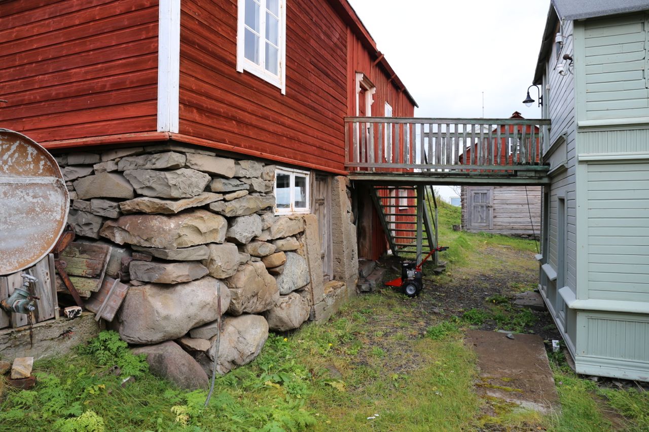 vadso-bietaelega%cc%8arden14Utenfra kan man fremdeles se den eldste tømmerveggen i et av vinduene i husets første etasje mot sør. Bietilægården er et Varangerhus av type 4, et kombinasjonshus hvor boligdelen og uthusdelen knyttes sammen av ei bru på baksiden av hovedbygningen.