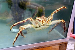 På Storekorsnes er det etablert et akvariet på kaia med den eksklusive kongekrabba.