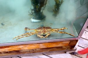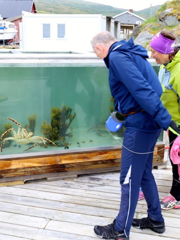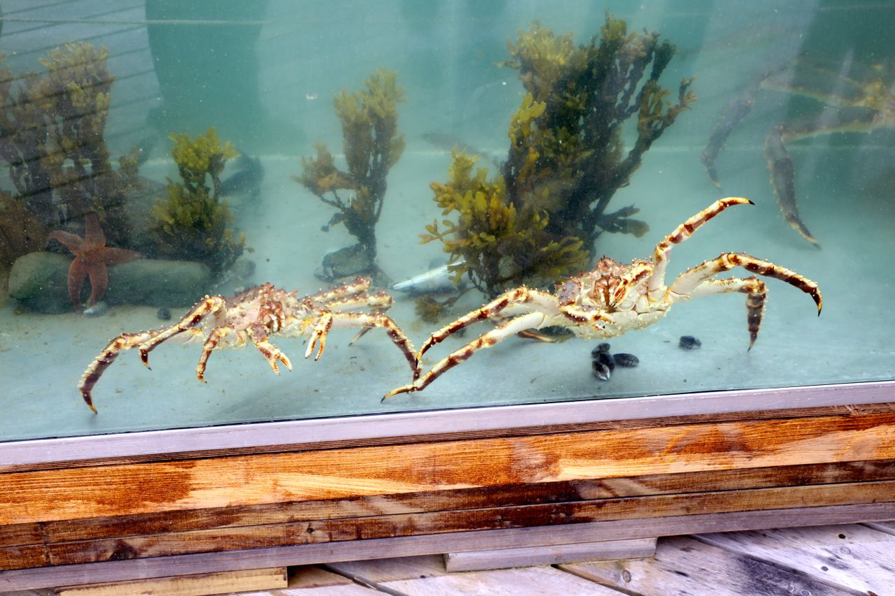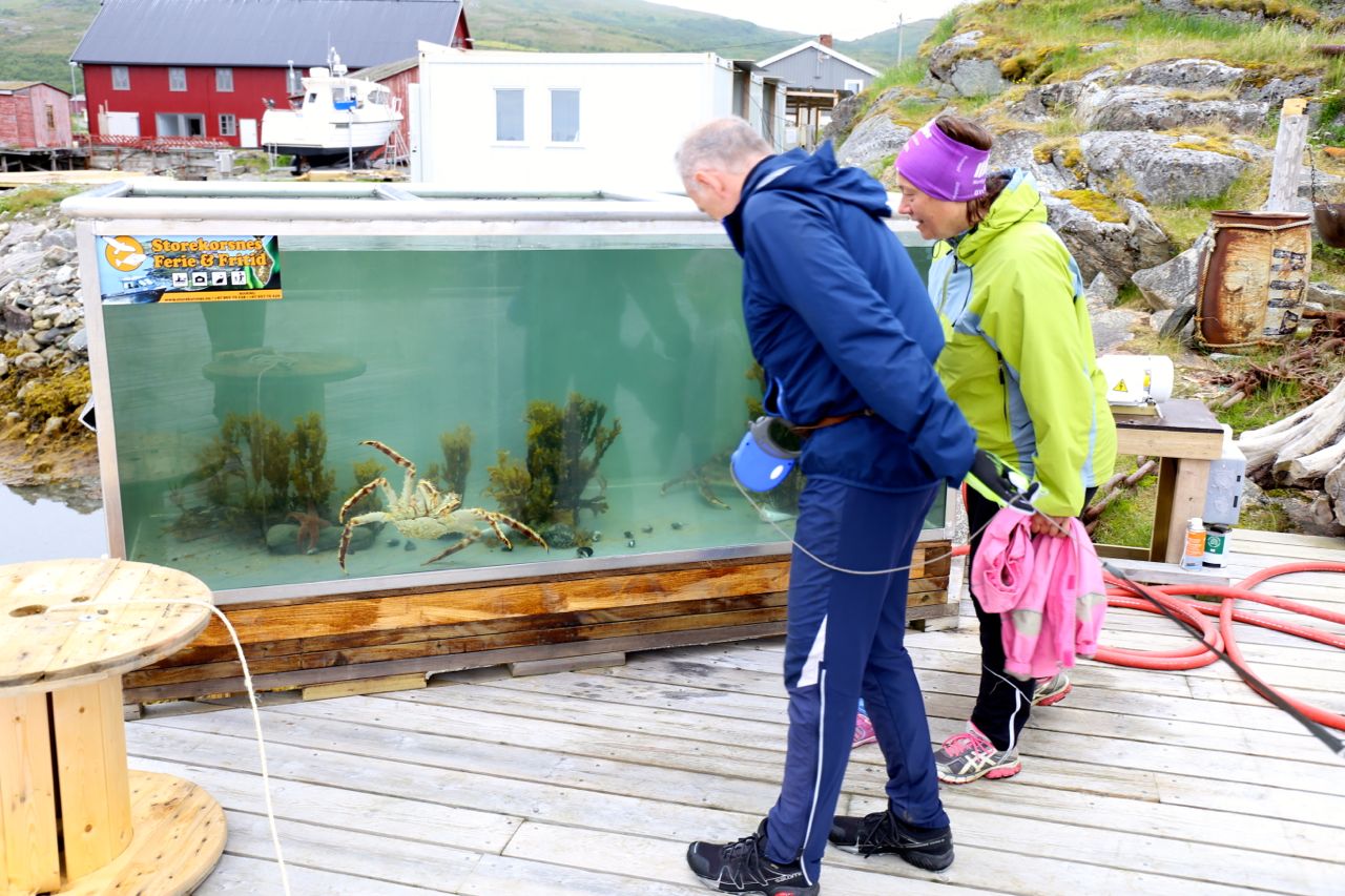 På Storekorsnes er det etablert et akvariet på kaia med den eksklusive kongekrabba.
