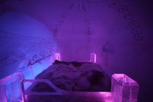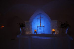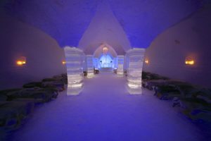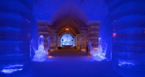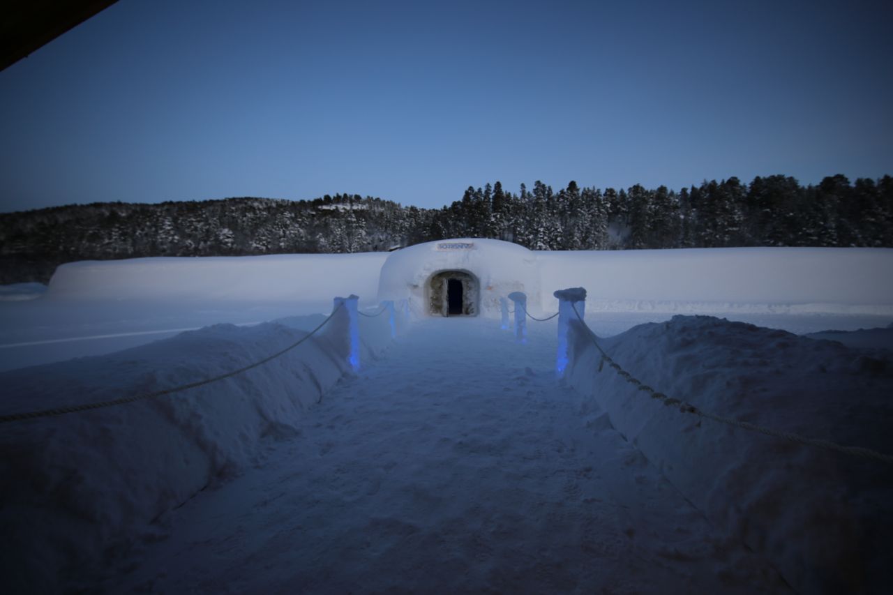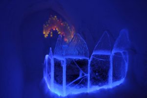 Som et slott bygget av snø og is med imponerende skulpturer.Hotellet har fått mange priser og regnes blant de aller største severdighetene i Finnmark.