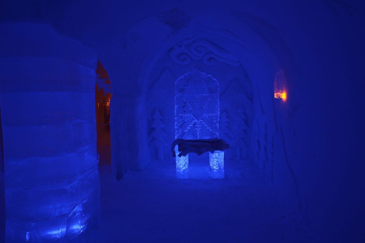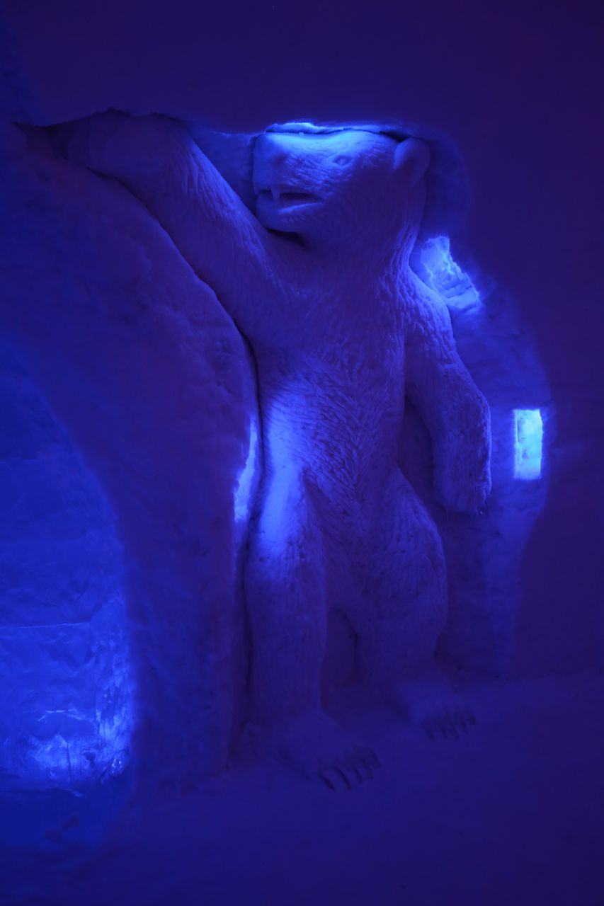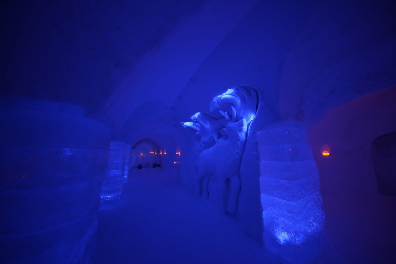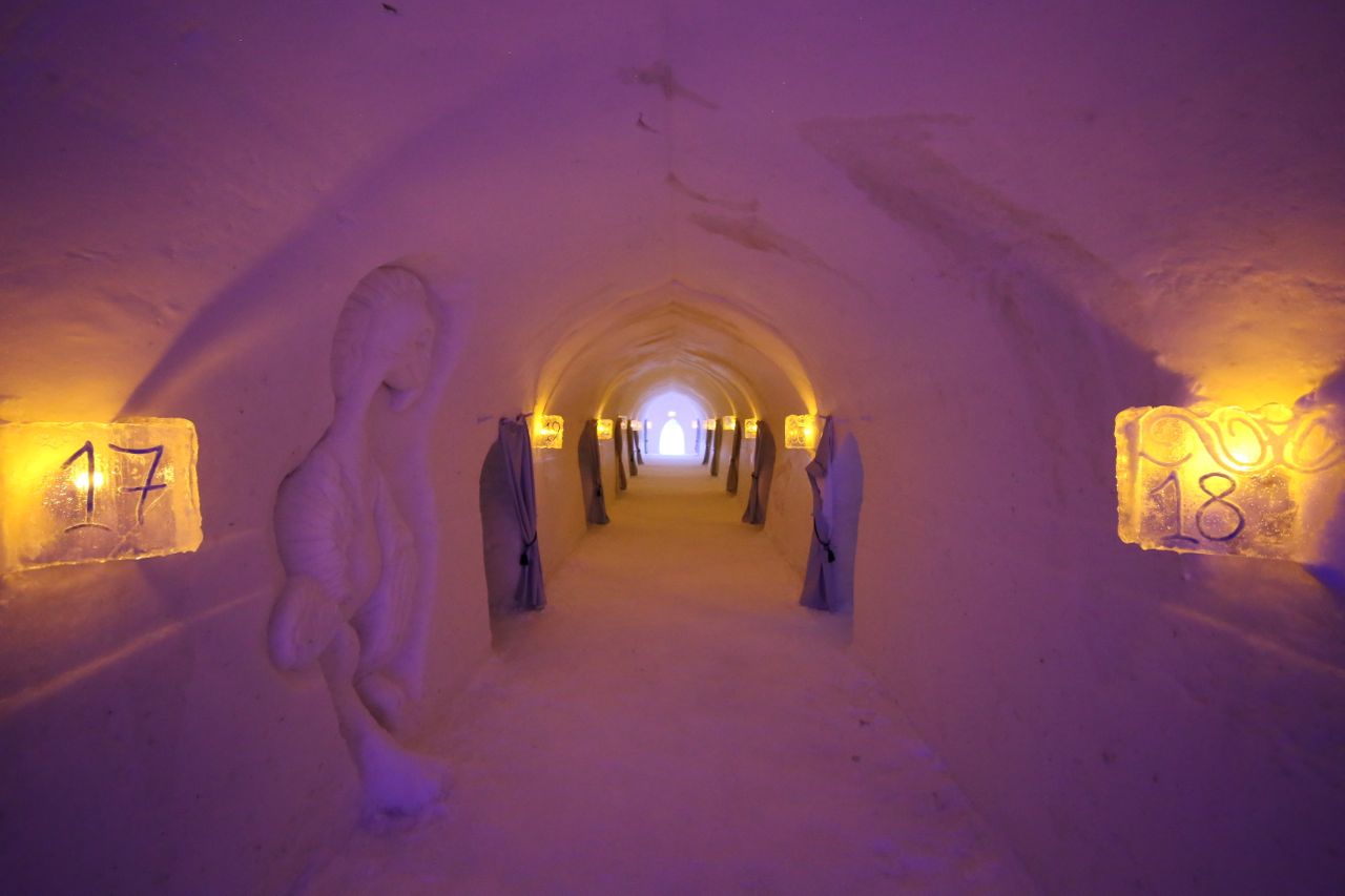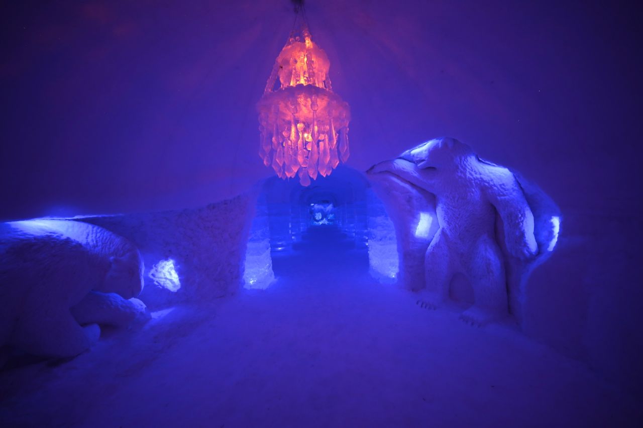Sorrisniva Iglo Hotel is like a castle built of snow and ice with impressive sculptures.