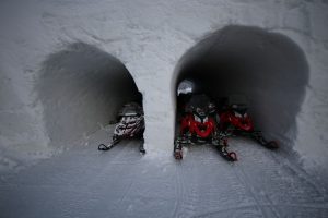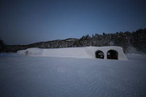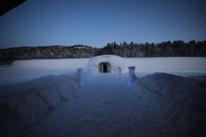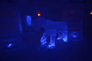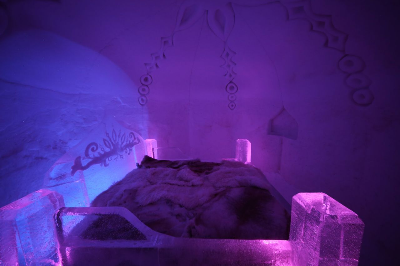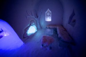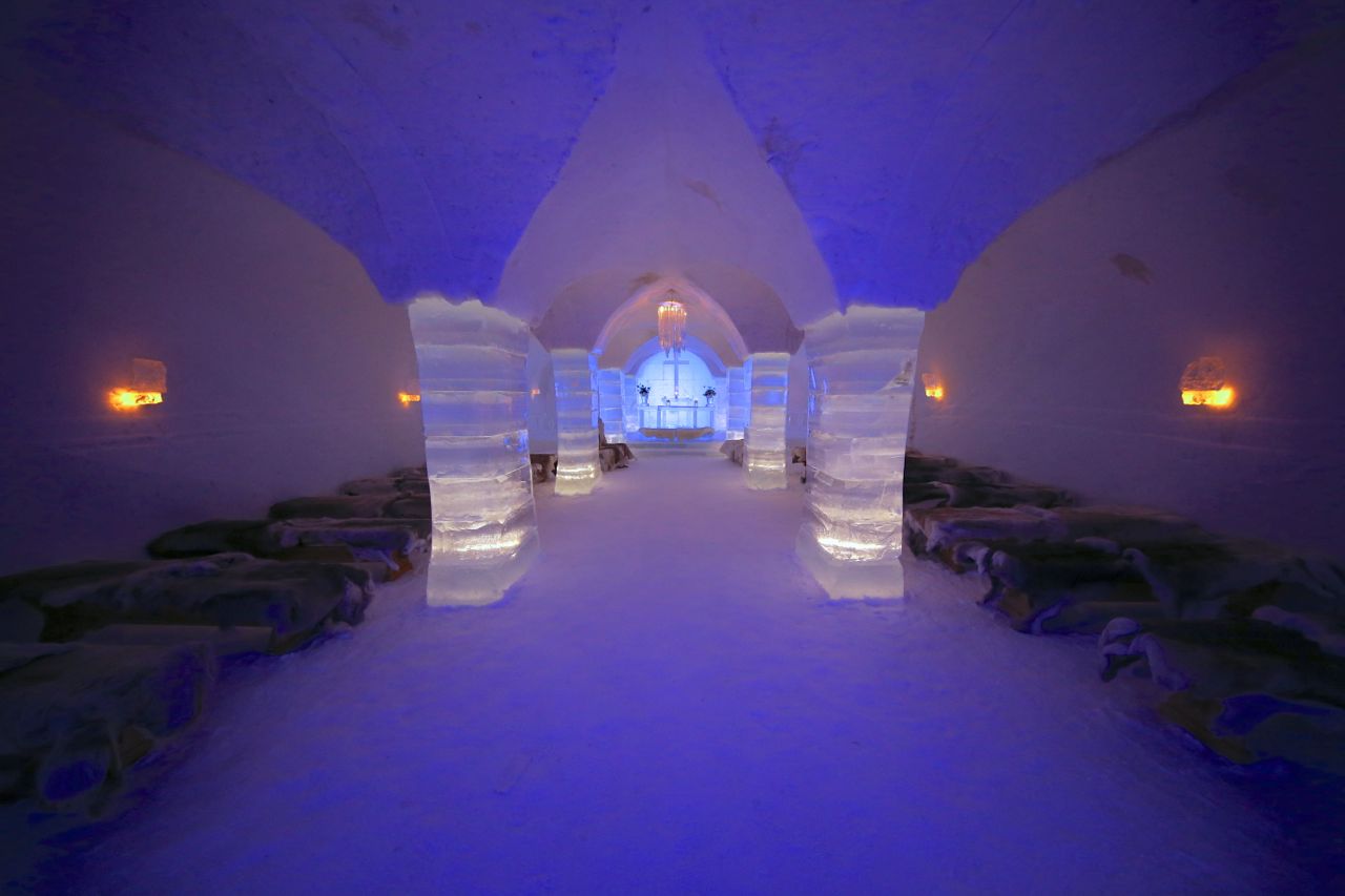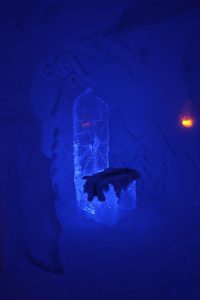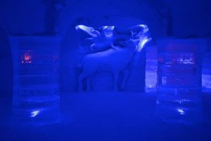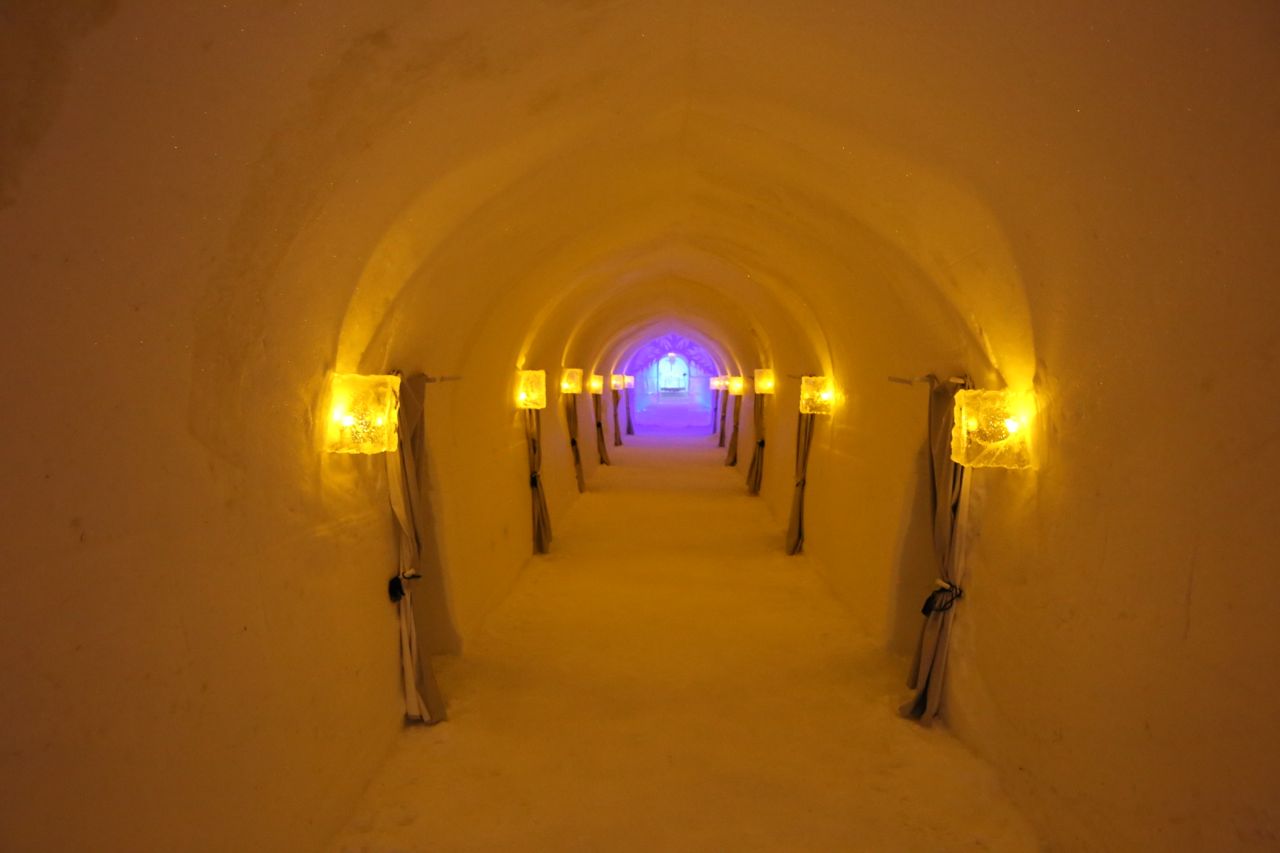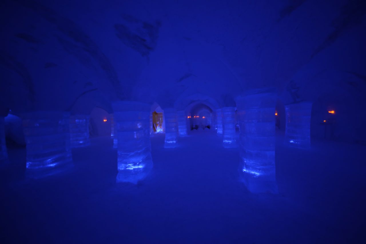 Sorrisniva Iglo Hotel is like a castle built of snow and ice with impressive sculptures.