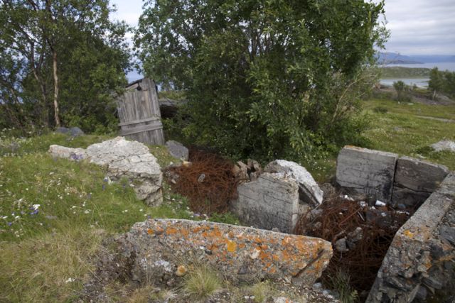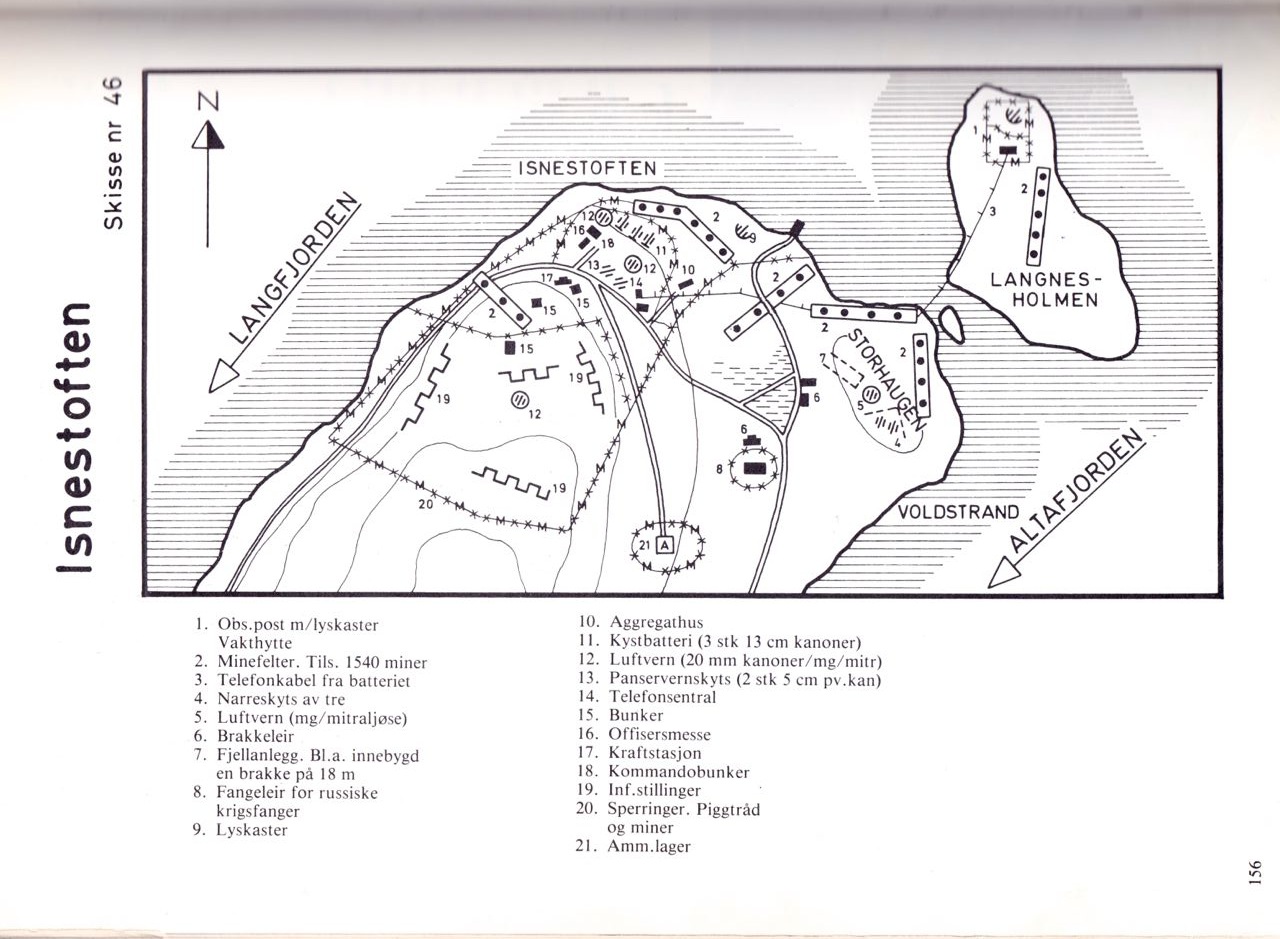 At Isnestoften there was a battery which, together with the Storekorsnes battery (over the fjord), formed the inner line of the coastal intersection of Altafjorden with side feathers.