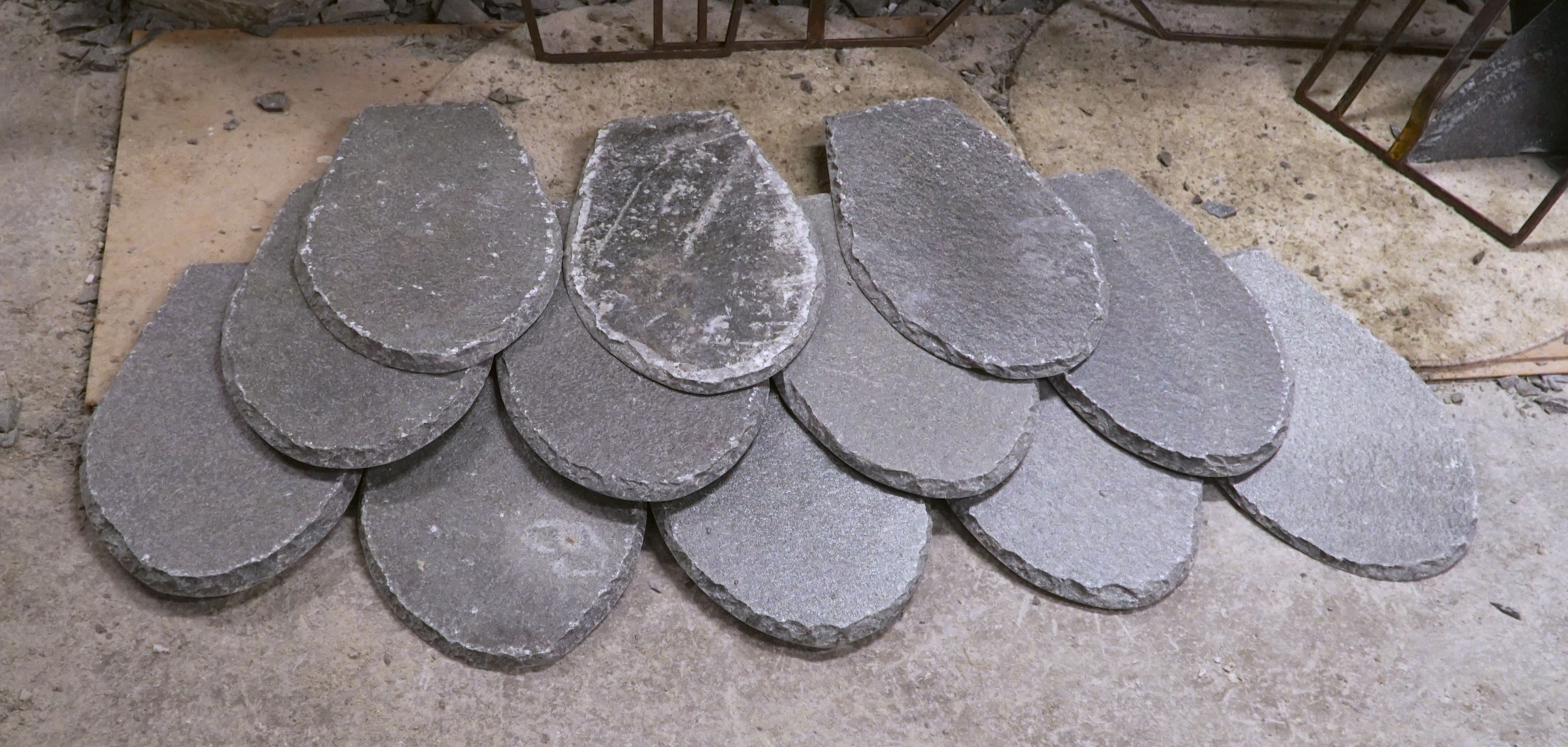 ” som igjen ble klippet med de gamle håndsaksene. Sluttproduktene var takstein, flis og heller. Hve