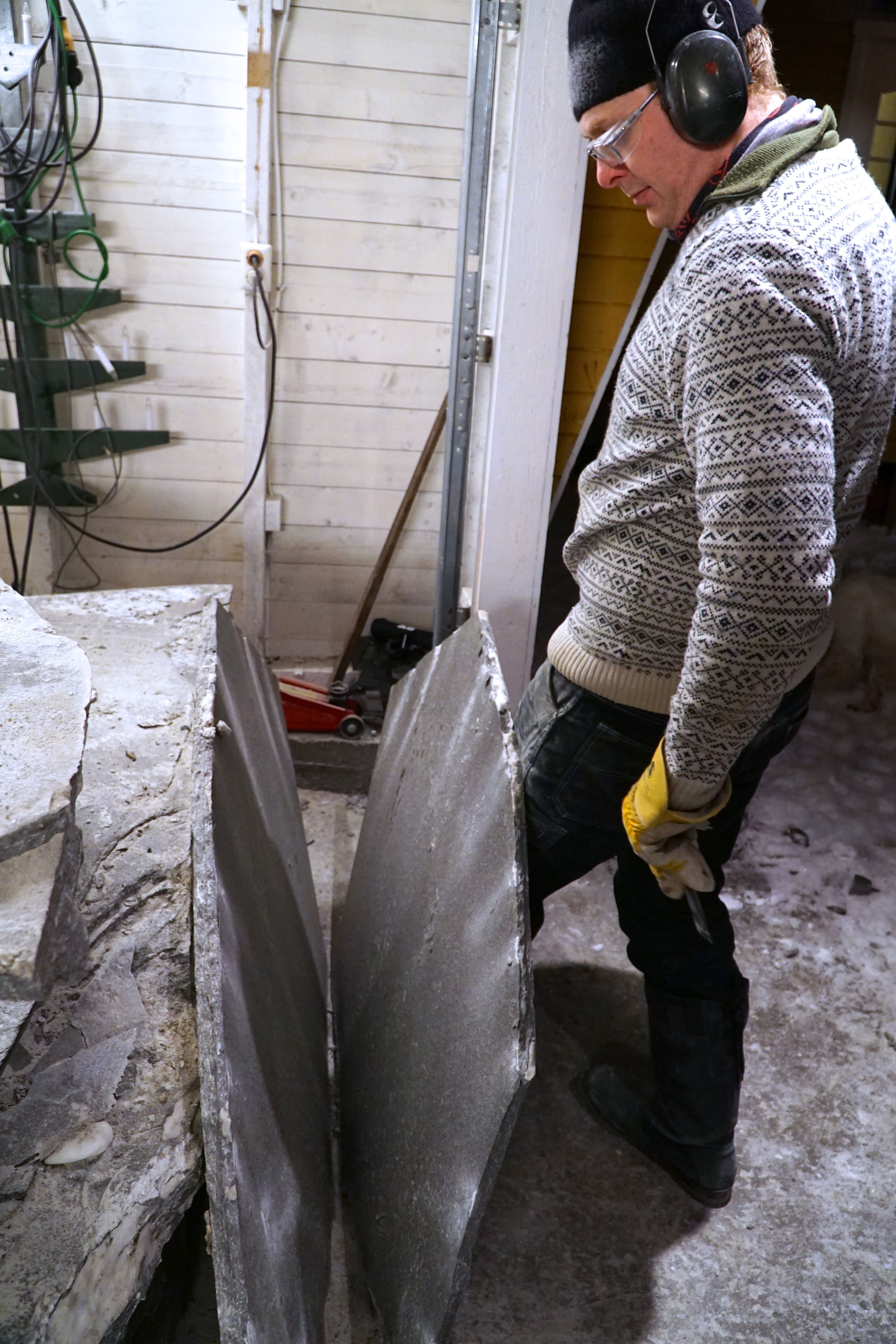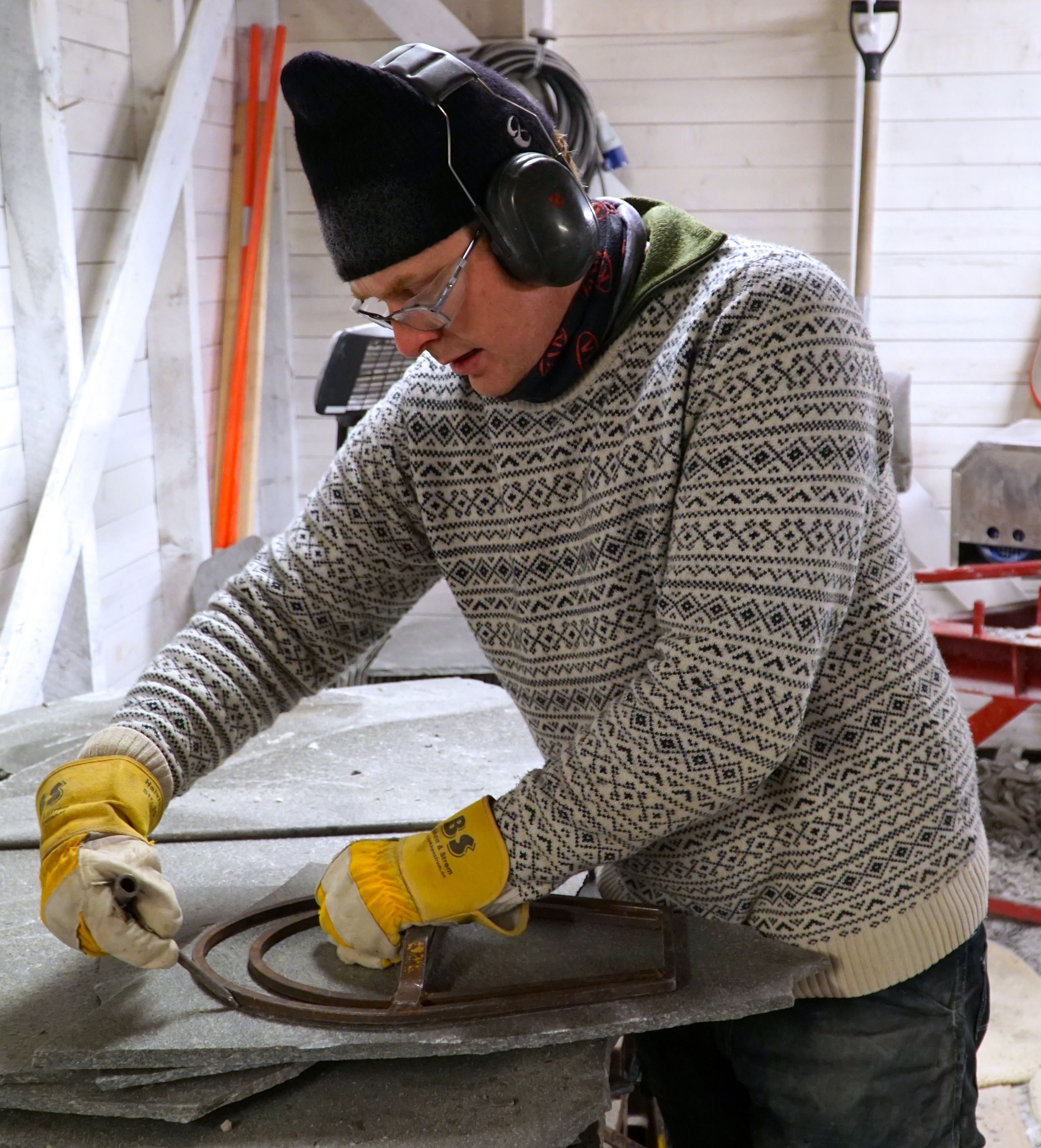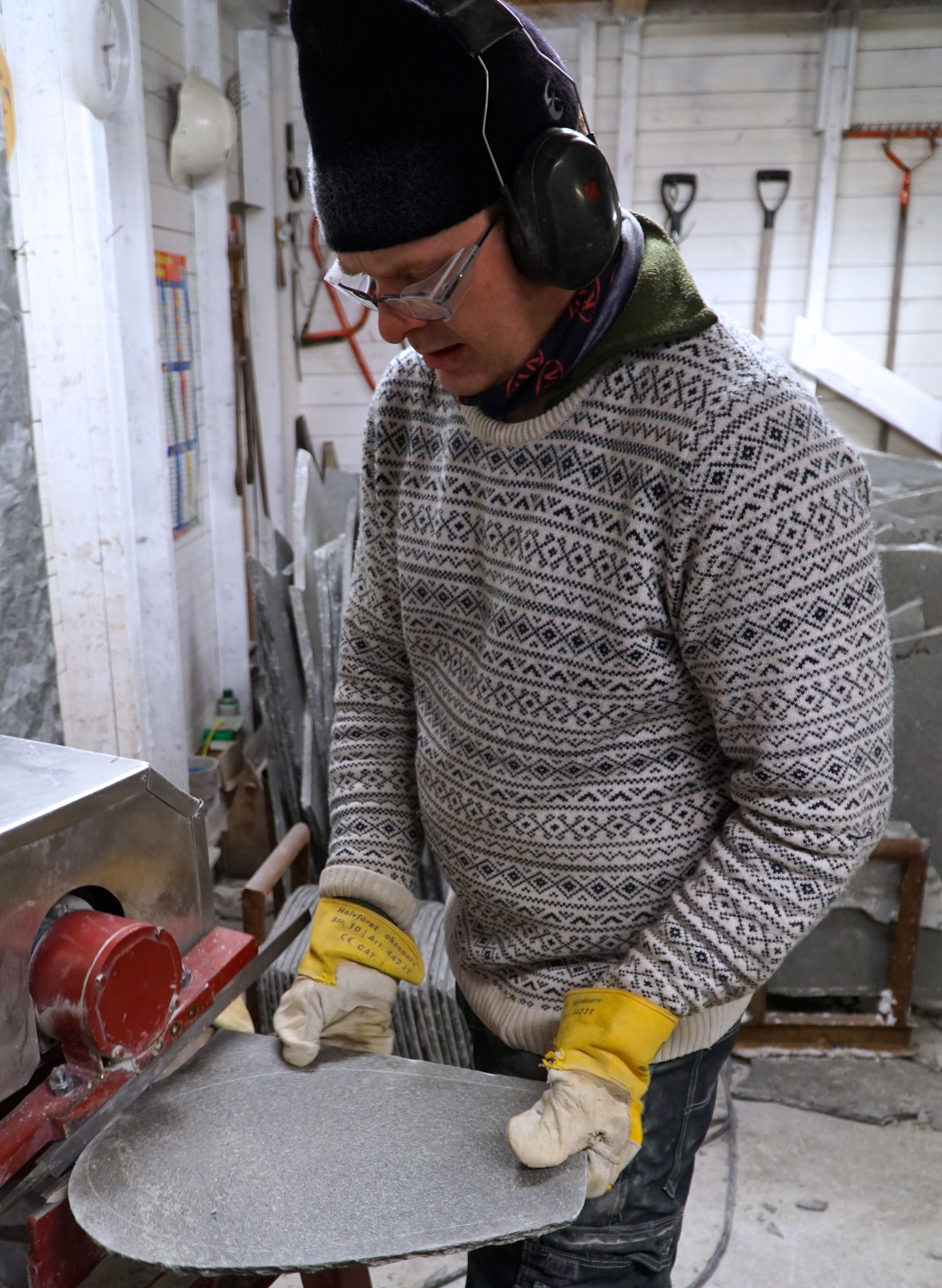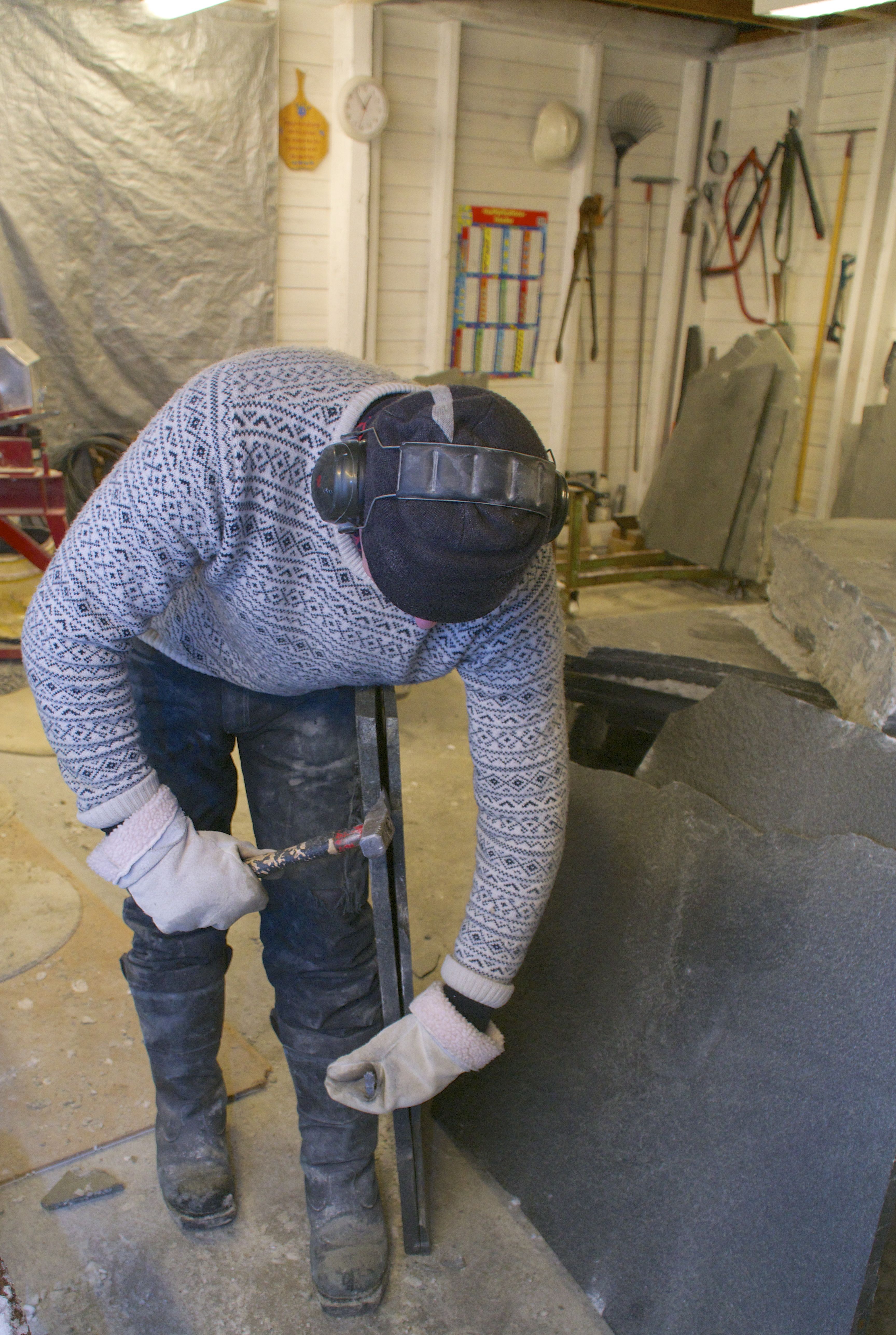 Høyt over Alta, på kanten av Finnmarksvidda finner du arbeidsplasser du kanskje ikke venter å finne. I dag en hel industri av små bedrifter, enkeltmannsforetak som tar ut den harde Altaskiferen. For en, – to generasjoner siden drev flere hundre ”slitere” som sprengte fjellet med krutt i stedet for dynamitt for å ta ut skiferblokker. Kruttet eksploderer mer langsomt og knuser ikke fjellet på samme måte. Blokkene ble bearbeidet, klyvet og delt til ”pinnastein