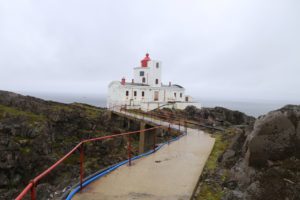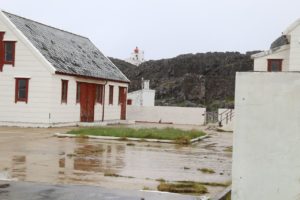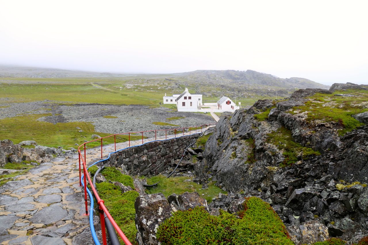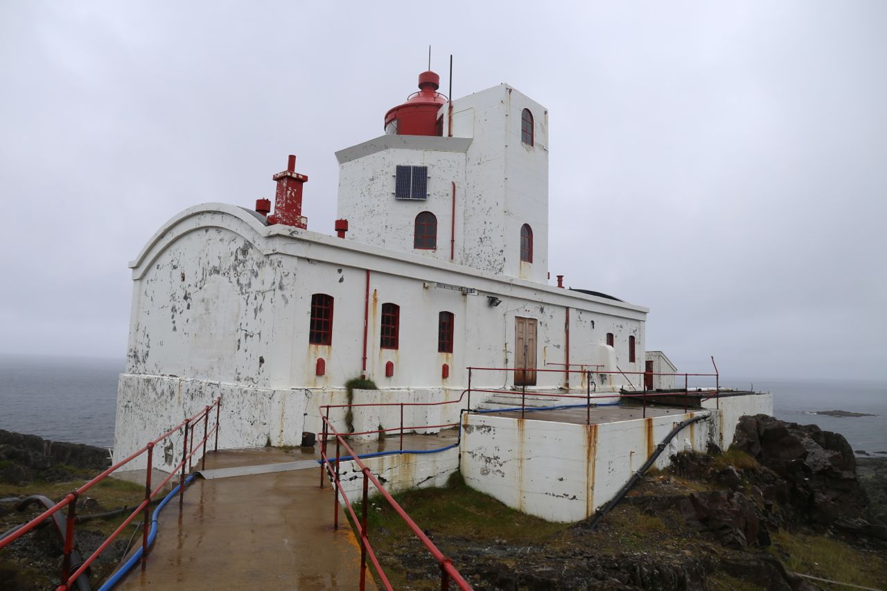 er, uthus og tufter etter bolig og uthus. Bygningene ble revet så sent som på 1980-tallet og en dårlig tilpasset bygning som i dag brukes til bolig og maskinhus, ble satt opp utenfor tunet. En støpt vei fører ned til naust og landing. Fyrbygningen har en dominerende plassering på toppen av en knaus i et opprevet fjellandskap, og fyrbygningen er en av landets mest særpregede.