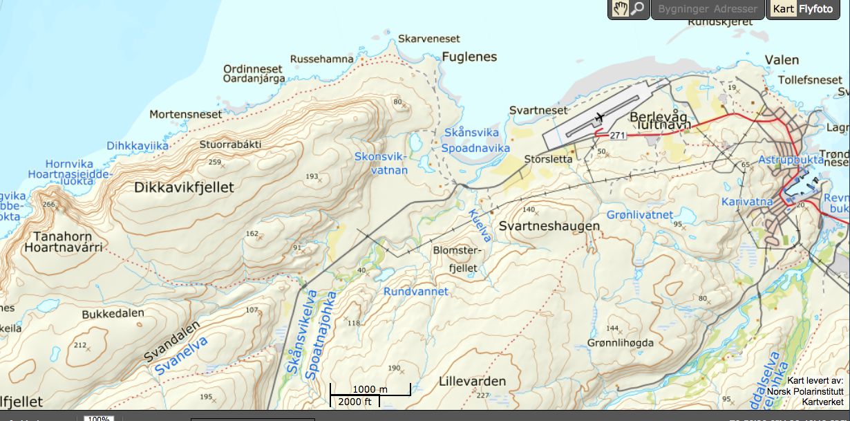 fiskefeltene, Tanafjorden, Nordkinnhalvøya og platålandskapet i sørøst. Markert