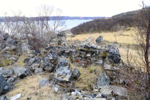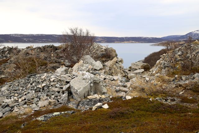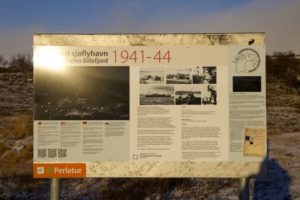 Men litt er det da enda å se. Et stort informasjonskilt forteller at ” På dette stedet bygde tyskerne opp en svært strategisk plassert sjøflyhavn fra tidlig under krigen fram til anlegget ble sprengt 11. desember 1944.” Videre forteller tavla at anlegget var under stadig utbygning og forbedringer. Arbeidet ble i stor utstrekning utført av sovjetiske krigsfanger.