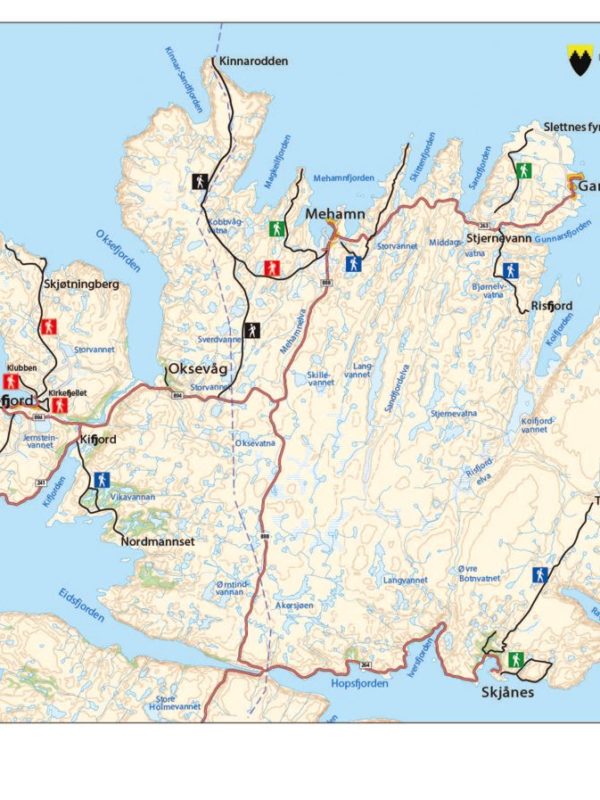 Se Travel-finnmark.no – forside/frontpage: Detaljert kart. Skriv Finnmark i feltet på kartet. Detailed map. Type Finnmark in the field on the map
