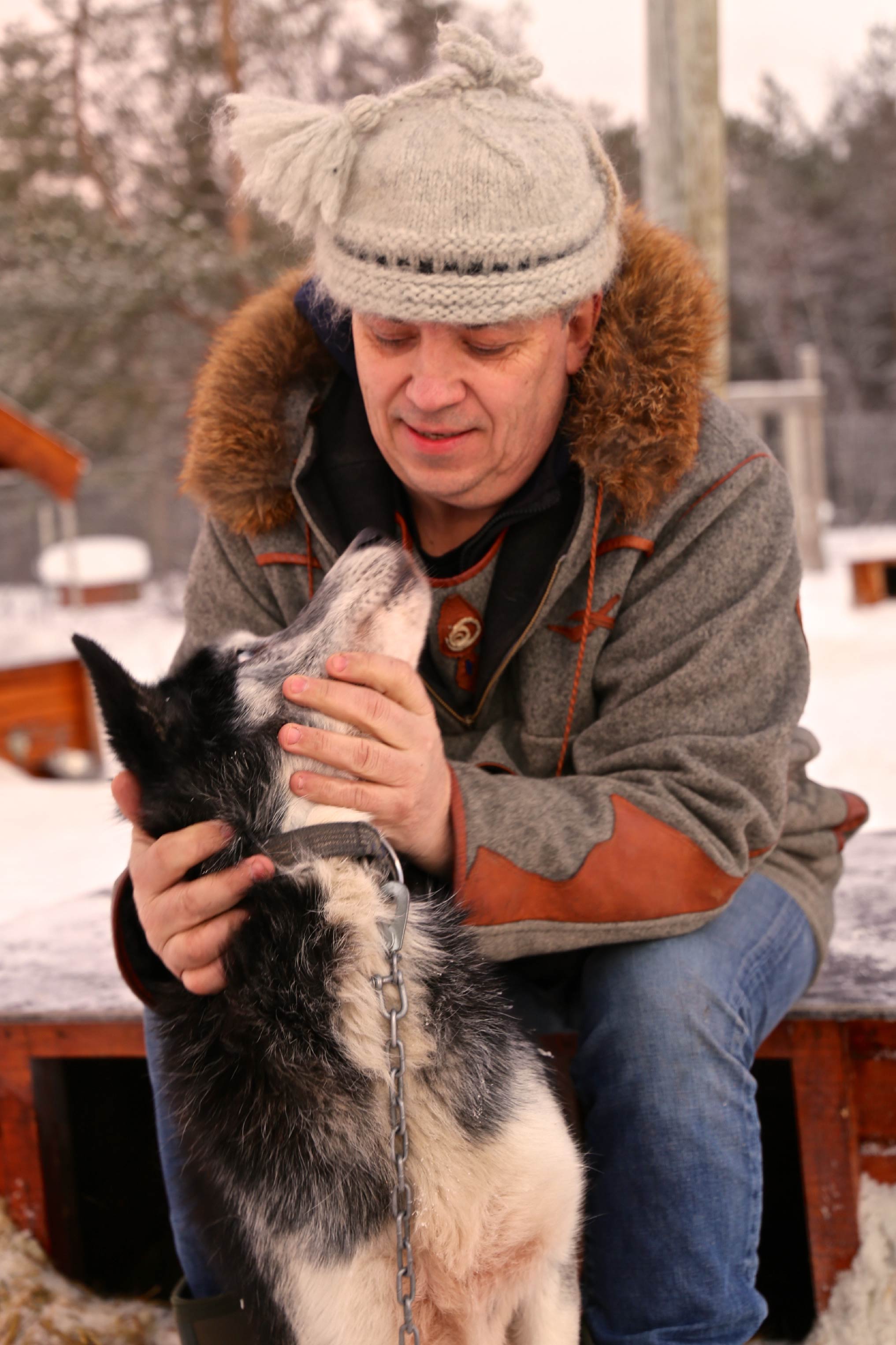 Han er konge på Holmen hundesenter, et gammel gårdsbruk i Alta. Det er restaurert og bygget opp til en fin liten bedrift med fire ansatte og 90 polarhunder. Starten var med to tomme hender på åttitallet en gang. Seletøy og sleder henger og står ryddig på plassene sine klar til ta folk med ut på turer i den fantastiske Finnmarksnaturen.Alta holmen K 01