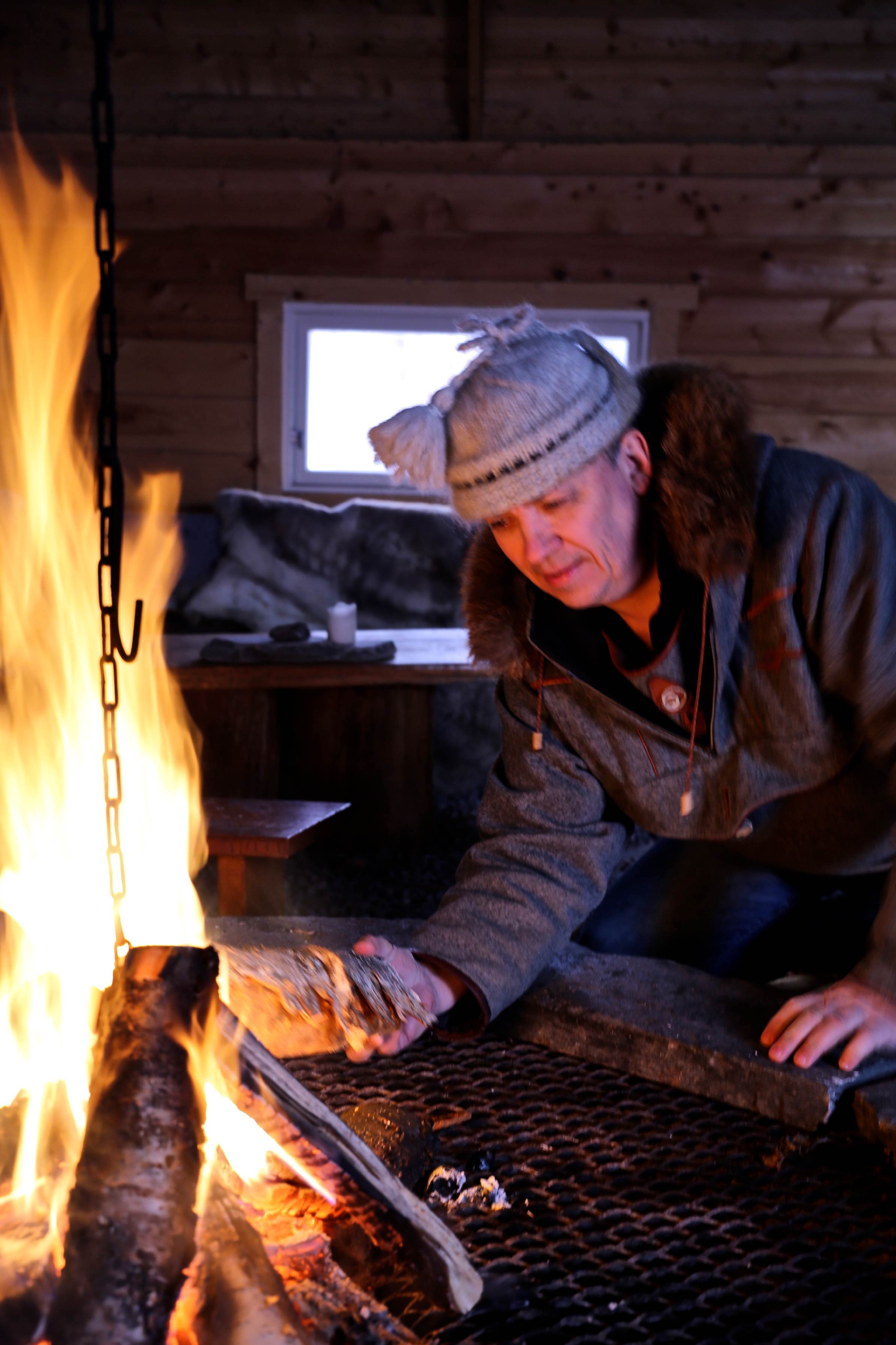 Ordene kommer mer som en bekreftelse enn et spørsmål. I Finnmark spør man ikke om man vil ha kaffe. Man bare henter. Eirik Nilsen, entreprenør, eier og hundekjører av Holmen Husky lodge, kommer frem bak kjøkkenbenken. To keramikk krus er fylt med kaffe. Han holder et i hver hånd. Vi setter oss i godstoler ved den store ovnen.