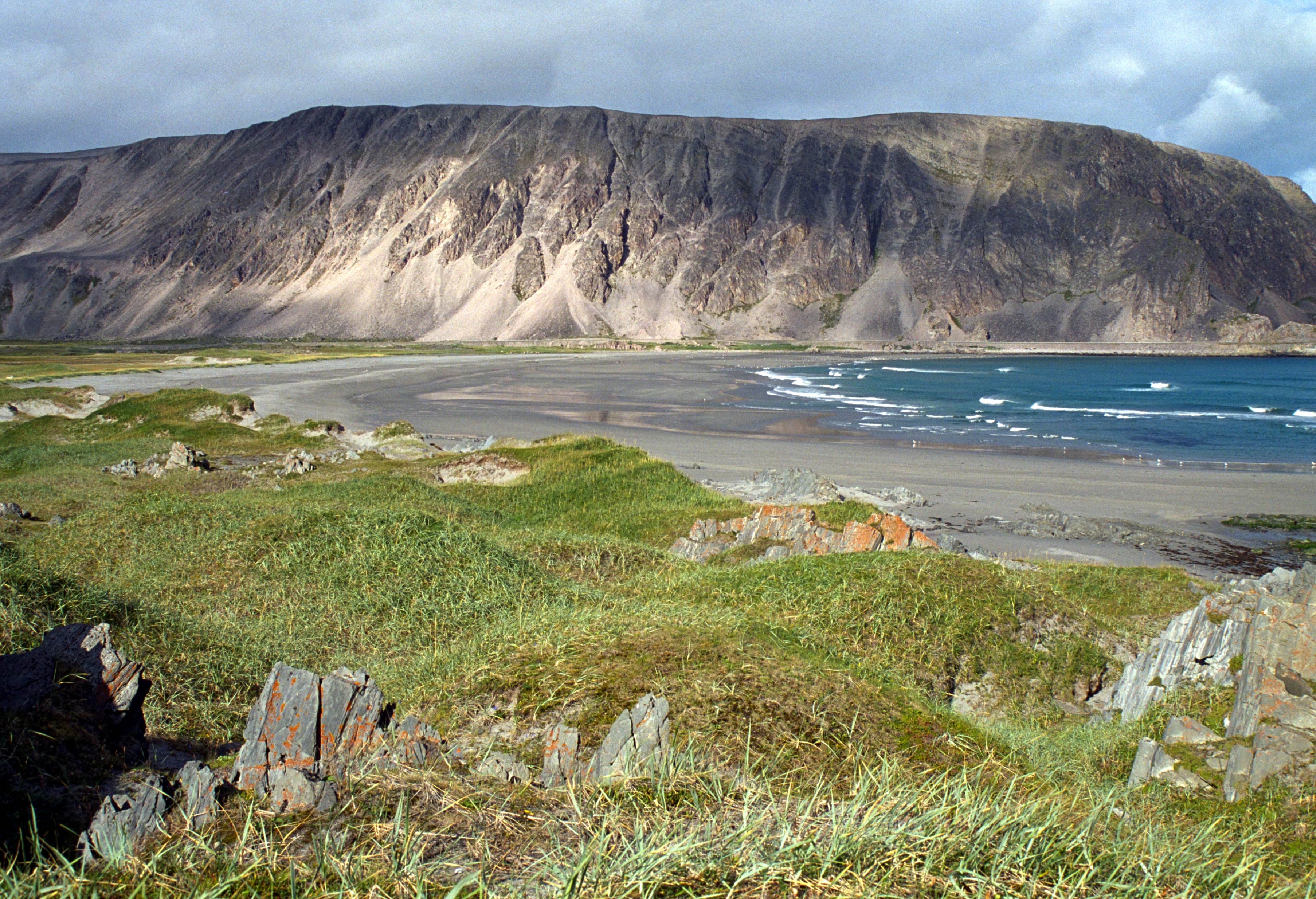 The rocks on the Varanger peninsula’s Precambrian, layered sedimentary rocks. They consist mainly of sandstone and shale deposited originally as sand and silt along the rim of an ancient continent, between 600 and 850 million years ago. Tectonics led then to the rocks on the northern half of the Varanger peninsula was pushed into the area from the west. This movement occurr