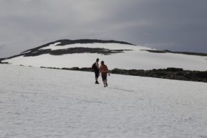 From the starting point it is just over 5 km to walk. It’s flat and nice, easy to walk till you approach Gosviktind. There is a lot of boulders. The climb up can be hard and if you’re not in good shape, you should eat before you start your trip.