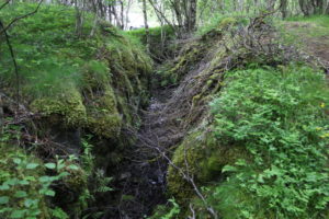 Red adm: Anlegget ligger på to sider av RV 7490 ved Eidet. Det er gjengrodd og kan være vanskelig å få øye på.