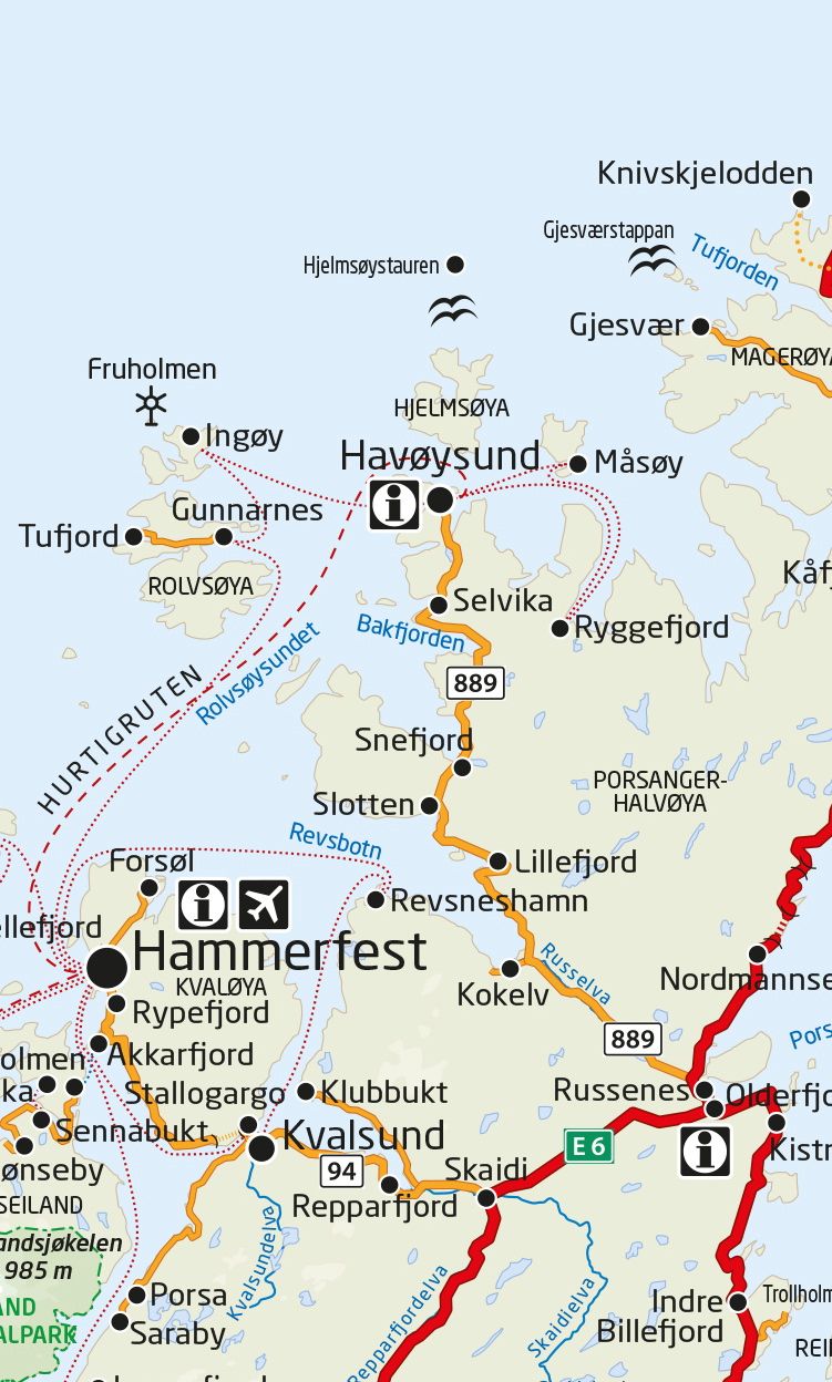 Ruteplan for Hurtigruta/Timetable for costal steamer: