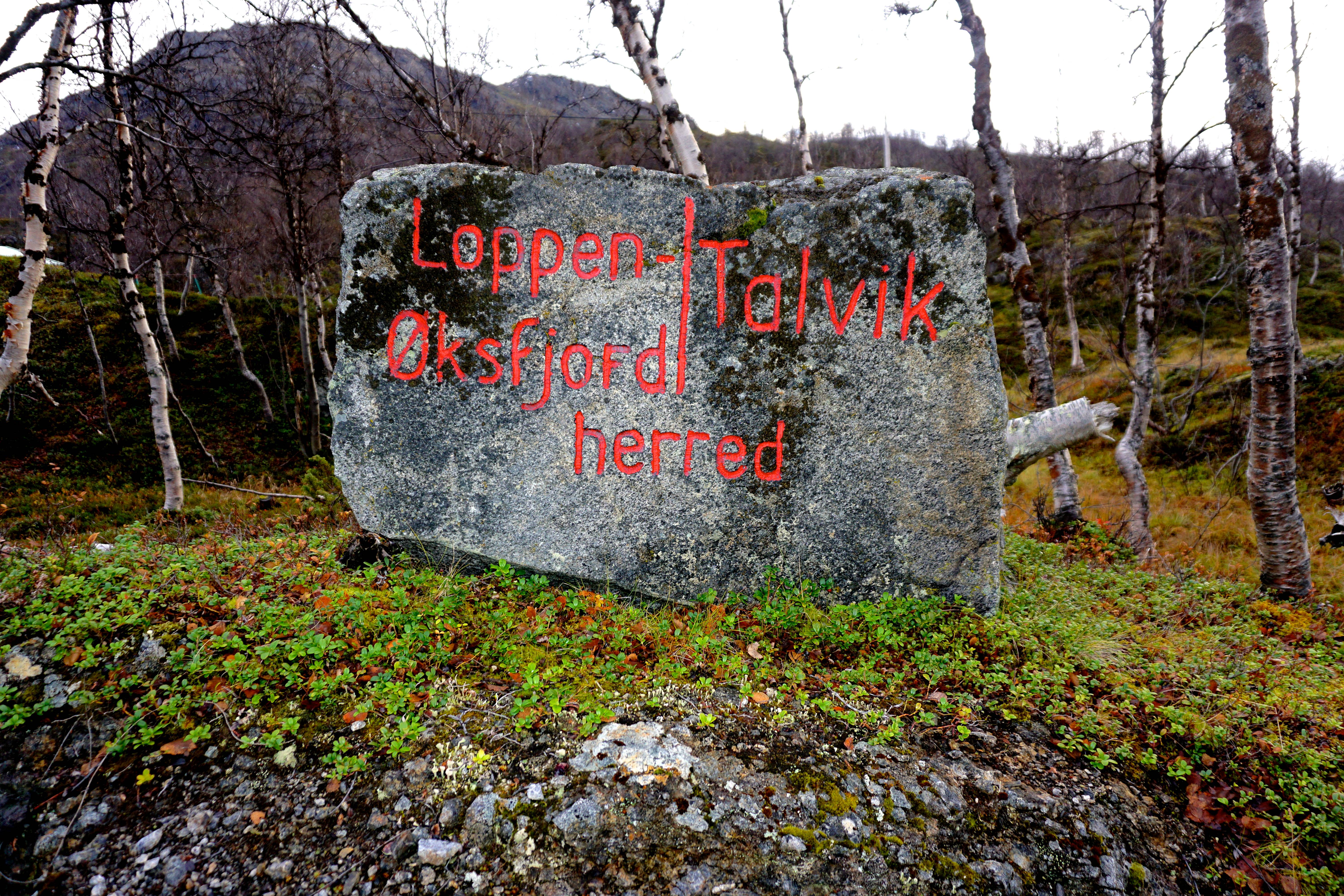 The stone marks the current municipal boundary between Alta and Loppa municipality. It stands along the old Øksfjord road. Previously, the municipal boundary between old Talvik municipality and Loppa marked. Talvik municipality is an early municipality in Finnmark.