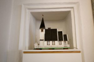 The church is a gift from Denmark after the war, and was the first church rebuilt in Finnmark after the war. The former church in the village was burned during the decay of the county in 1944. The architect Finn Bryn also designed Kautokeino church and Molde cathedral in the same period.