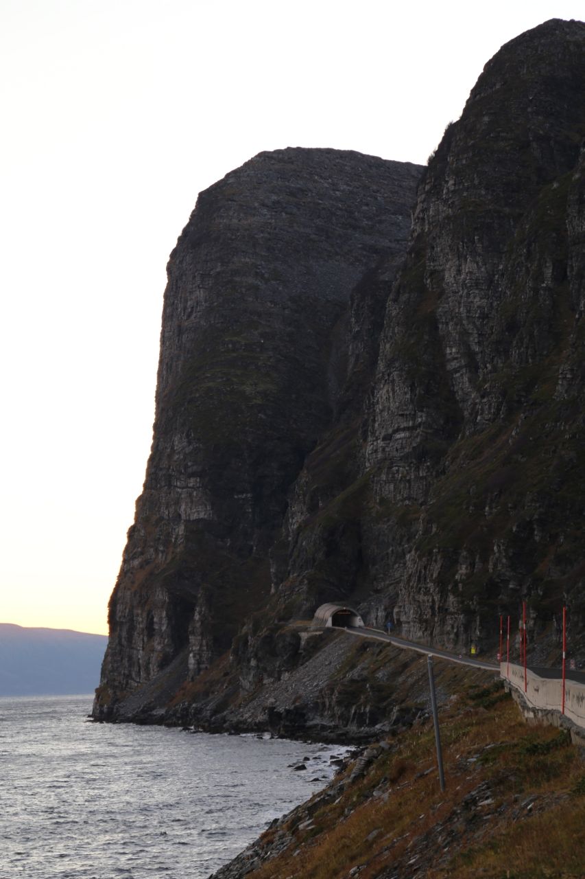 Sieidebäktti or Offer Mountain in Porsanger is steep and little accessible. Today it is easier to travel through the mountain than to climb it. If you are going to Nordkapp, you have to go through the mountain. The Skarvberg tunnel is almost three kilometers long. Dark and dripping wet, it is chopped by the Norwegian Road Roads through holy mountains.