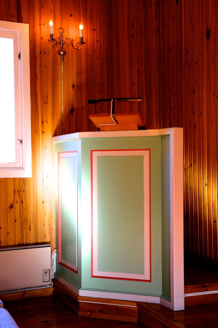 The edifice is made of wood and has 90 seats. The church was closed in 2012 because of damages.