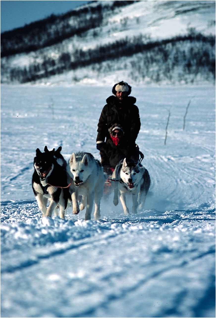 Lydløst, og raskt blir du båret over snøen. Hundene hiver seg i selene når de starter, ivrige etter å komme seg av gårde. Det er bare pusten fra hundene som høres sammen med ivrige ul, – og rolige kommandoer.