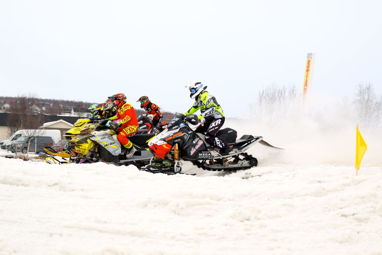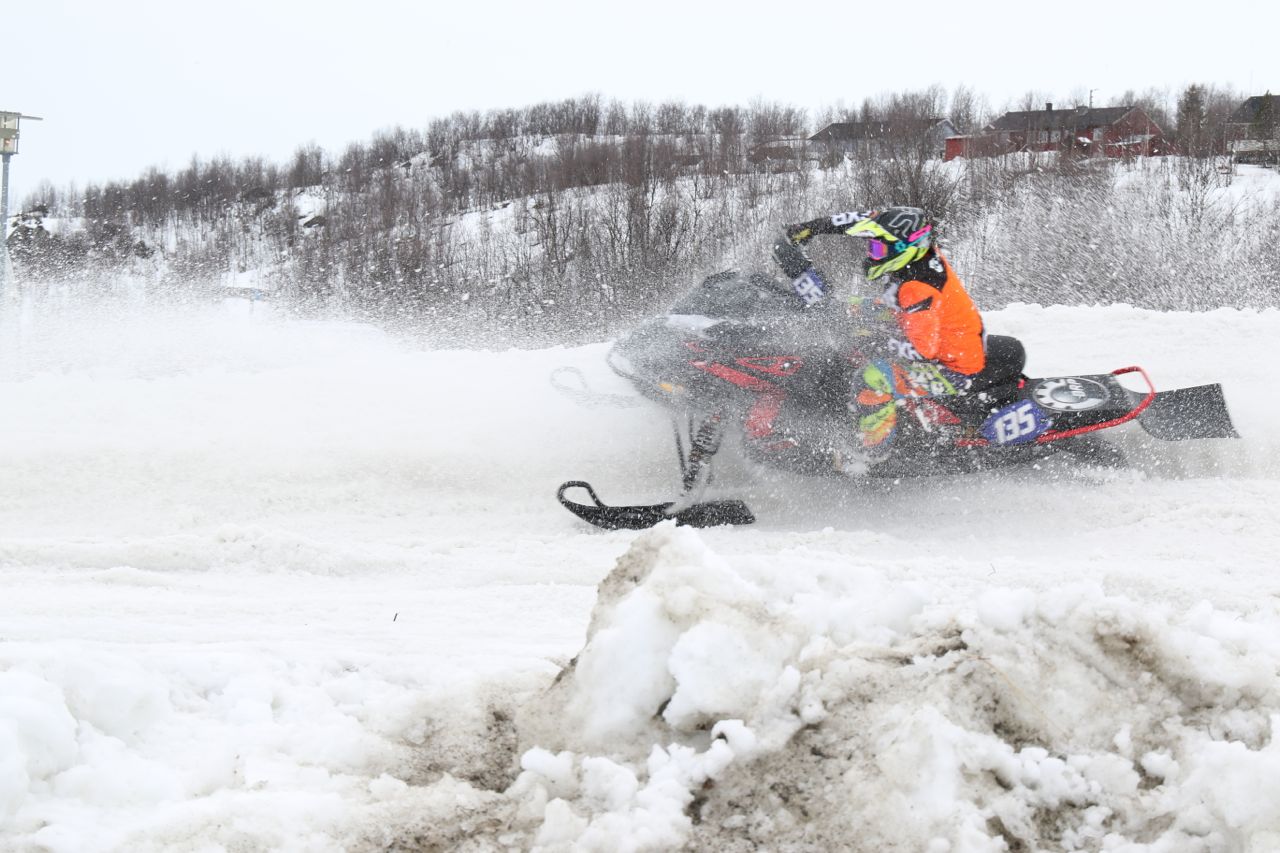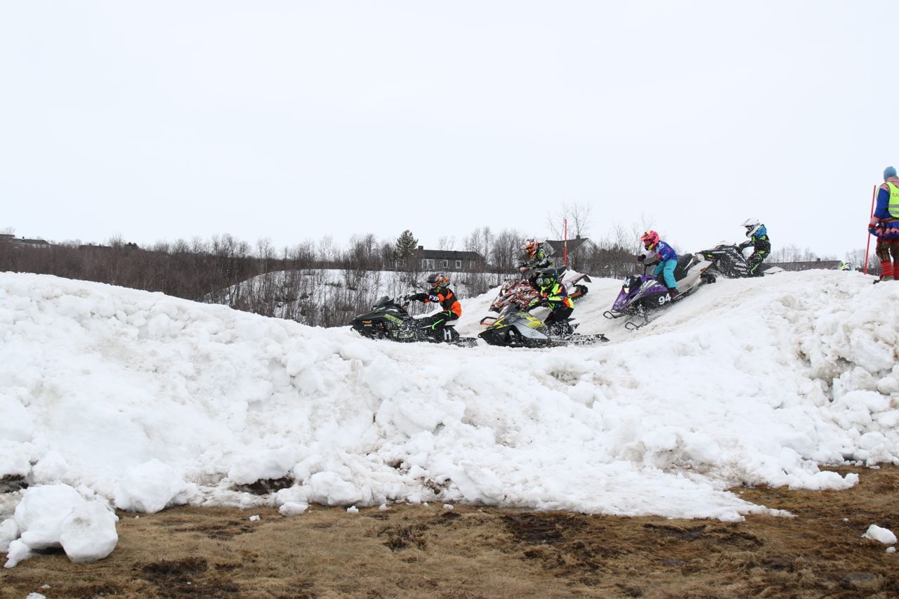 For anyone who likes speed, excitement, roaring and blowing snow snowmobile racing a great experience. It is arranged cross all places and in many places throughout Finnmark. The participants travel from place to place all winter and create activity. In Easter they have race in the middle of the village in Kautokeino and Karasjok. They gather lots of people. Participants are at the age of five and up riding on their mini-scooters. The snow is blowing around these little participants. The pictures show speed and fun for the older drivers as well.