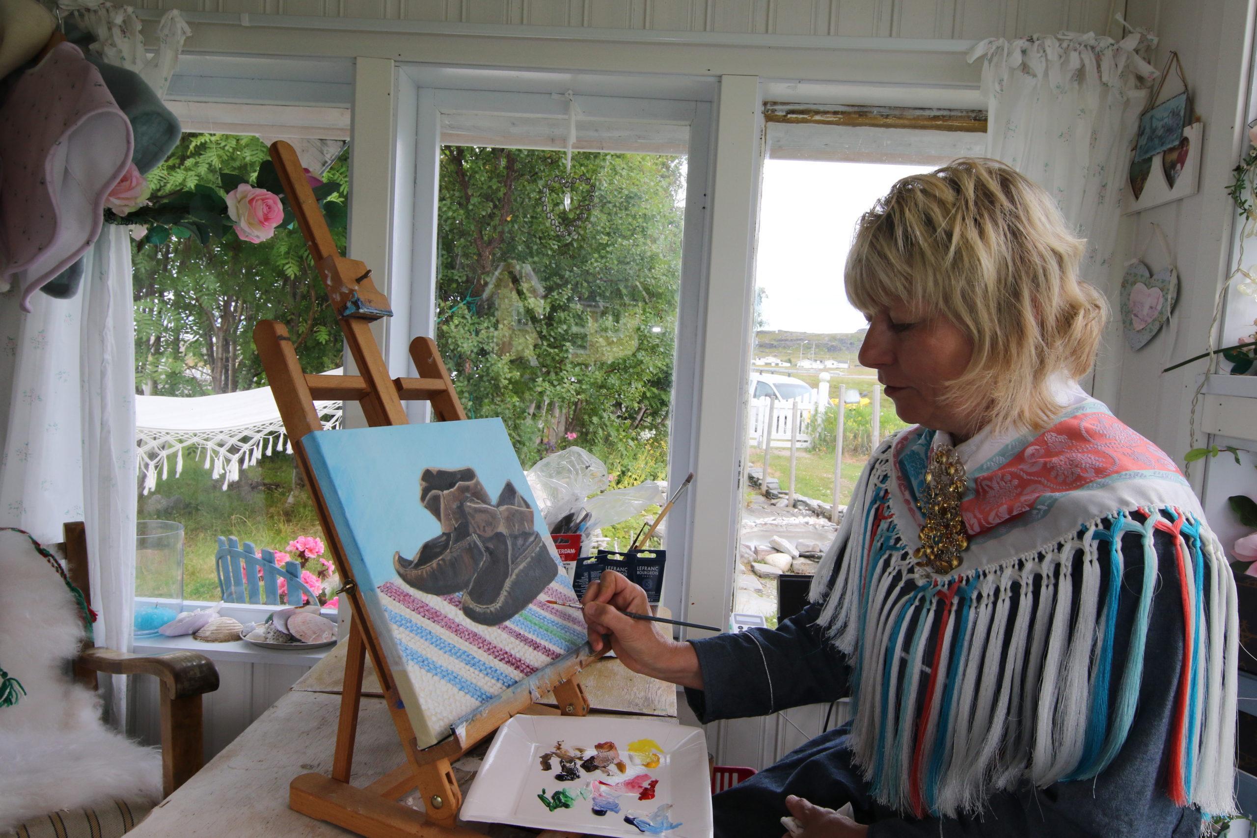 The artist Heidi Persen represents the coastal Sami culture in her production. Coastal Sami are largely permanent residents and have their work strongly linked to the coast and sea. Heidi was born and raised on the site Stranda in Nordkapp municipality. She is