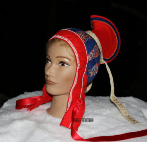Hornlue ladjo or ládju, after the Sami name ládjogahpir,is a traditional North Sami female hat with a horn-shaped top. The upright, forward-bent comb is cut from a hollowed-out tree trunk, placed on the back of the head and covered with colorful fabric like a hat otherwise. Horn hats are known from northern parts of Sápmi from around the years 1700 to 1900. The type of hat was particularly common in eastern parts of Finnmark. It was also in use in Finnish Lapland. From the 1850s, the Laestadians condemned the headdress as a «satanic sign», [2] and the hat went out of use in parts of Finnmark during the century.