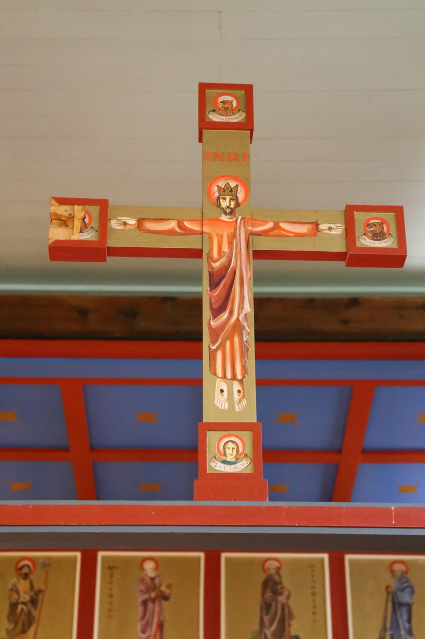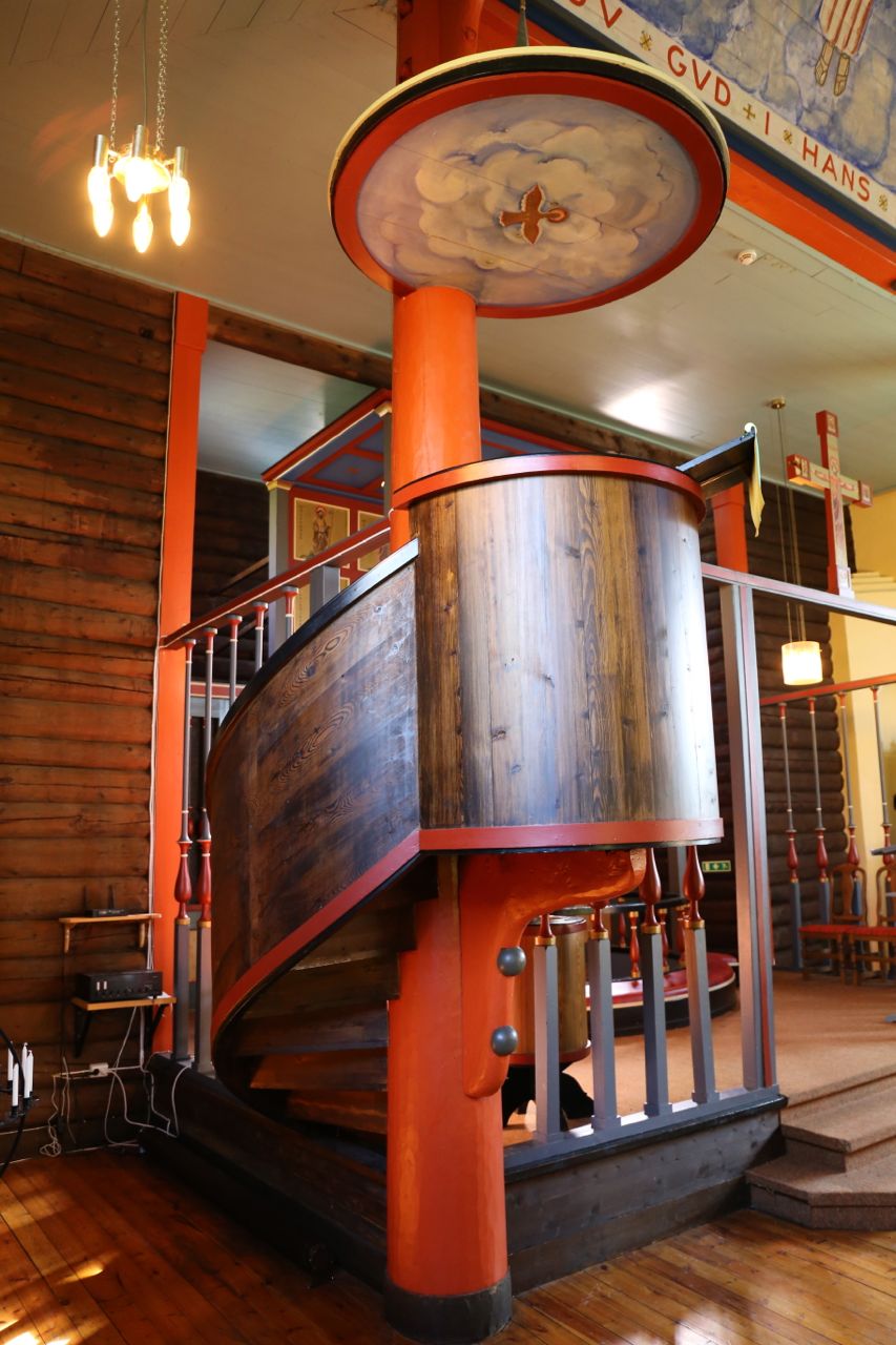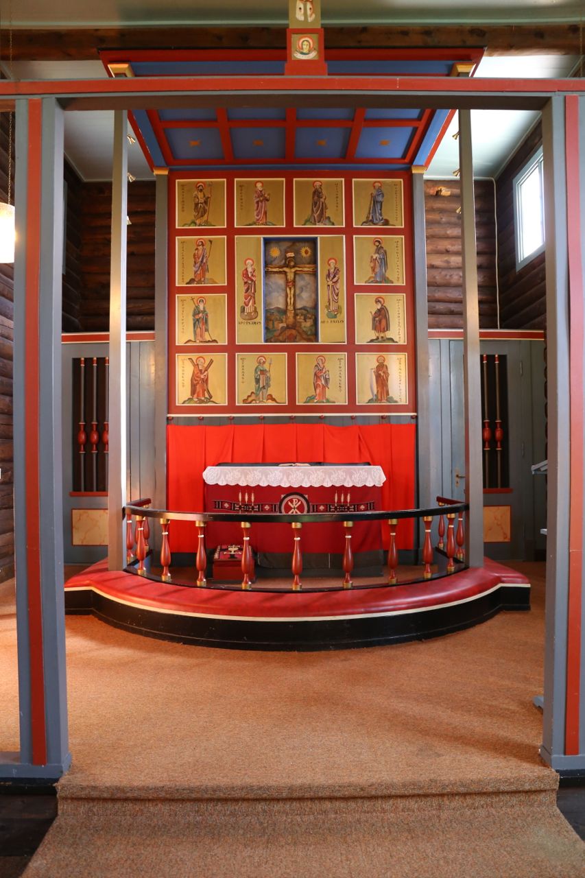 Svanvik church from 1934 is a distinctive cruciform church with powerful turret over the middle, listed in upanelt notched round timber was designed by architect Harald Sund. The church is characterized by a simplified version of the national baroque. The choir, which juts into the church room cross section, surrounded by slender, turned posts and canopy over the altaKirkenes Svanvik kirke 110r party is supported by pillars. Over the middle of the room there is a four-sided gown vault decorated by Arthur Gustavson.