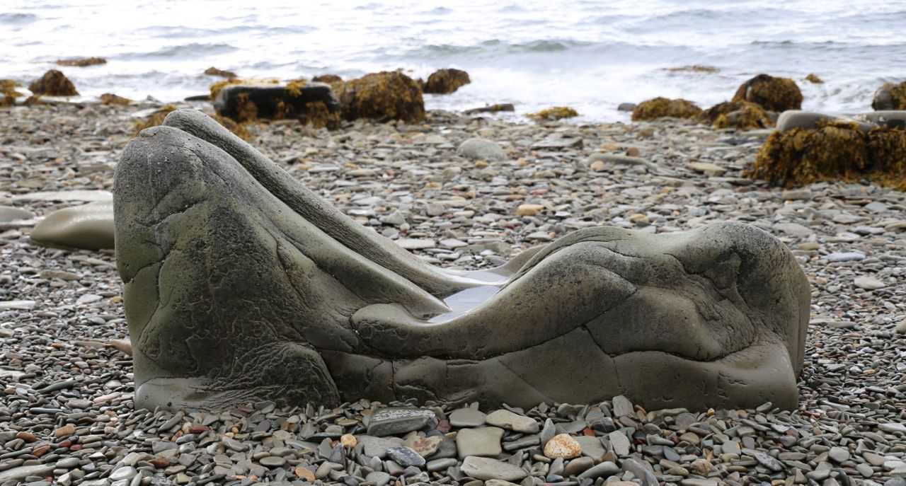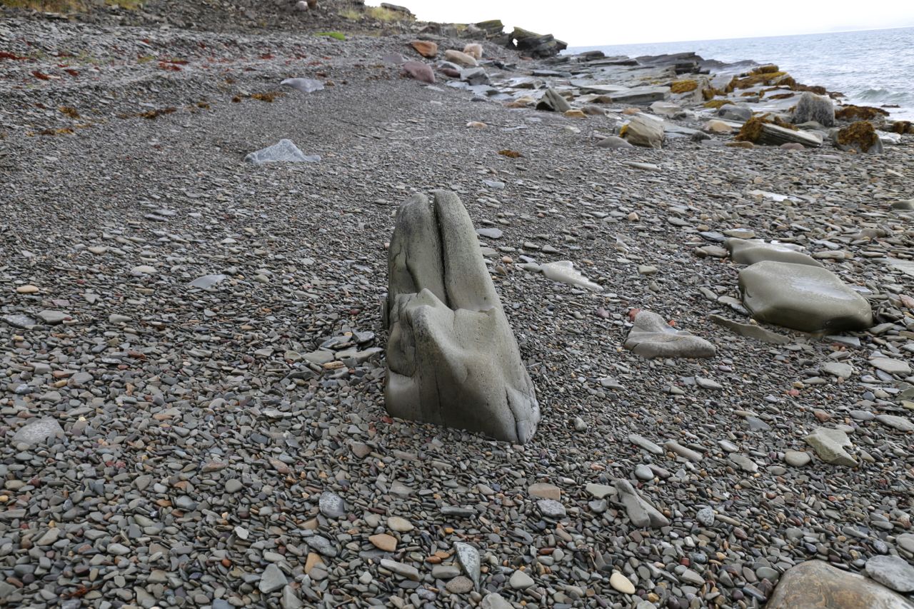 Quietly nestled she shoreline. Beautiful and clean. No wonder that the name Varangervirgin has lingered this stone. It is not big. Only about 150 cm long so it is not easy to see among the other stones. Running from Varangerbotn and come to the municipal sign for Vadsø stop at the small parking lot, go down the shore and follow it about a hundred meters. There it is. Adorable beautiful and clean.